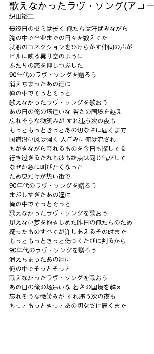 | 歌曲 | 歌えなかったラヴ・ソング(アコースティック・ヴァージョン) |