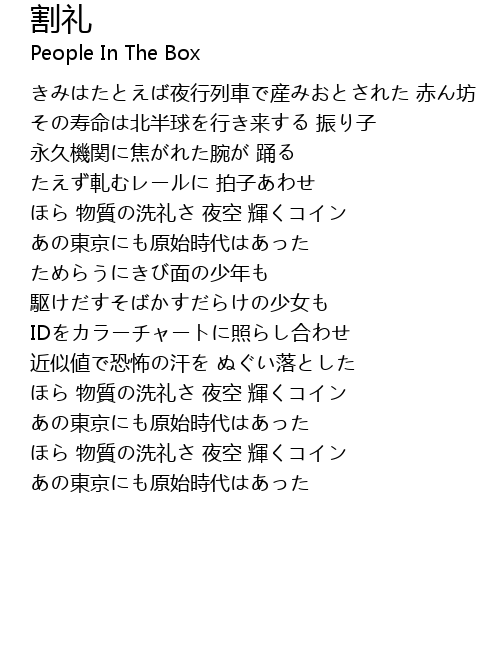 | 歌手 | People In The Box |