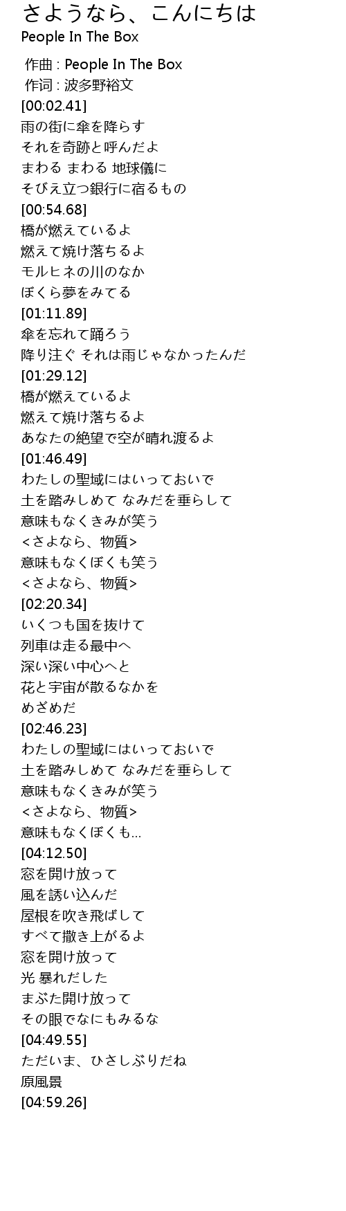 | [04:49.57] | ただいま、ひさしぶりだね |