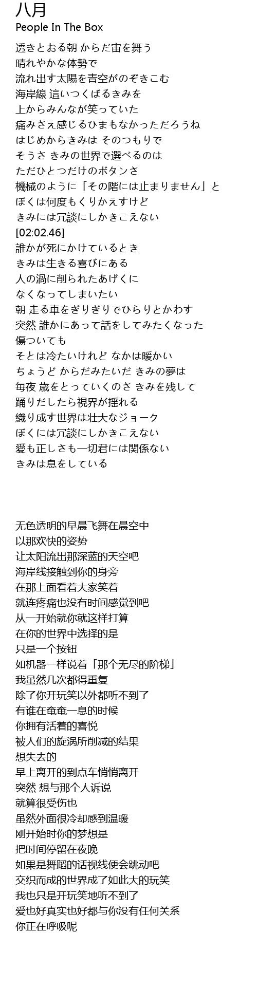 | [00:30.53] | 透きとおる朝 からだ宙を舞う |