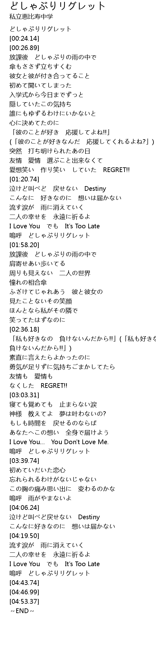 | [03:00.21] | REGRET!! |