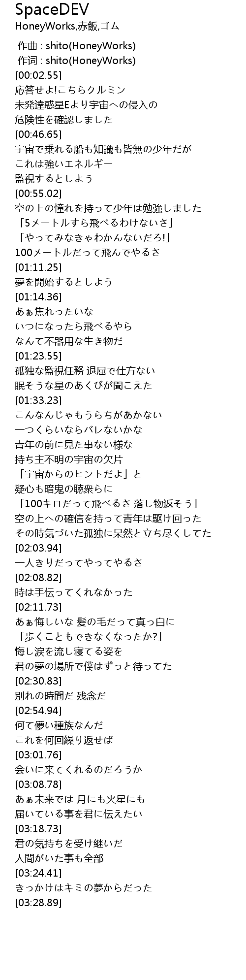 | [03:11.46] | あぁ未来では 月にも火星にも |