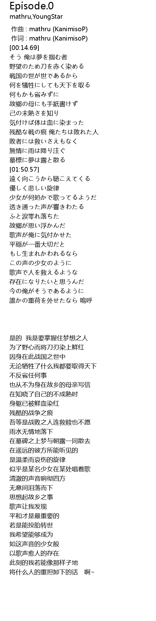 | [00:00.00] | 作曲 : mathru (KanimisoP) |
