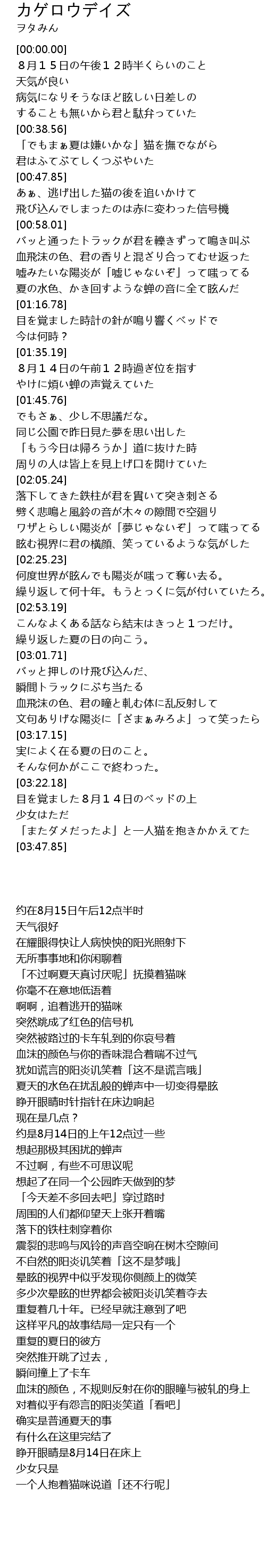 | [03:31.75] | 目を覚ました8月14日のベッドの上 |