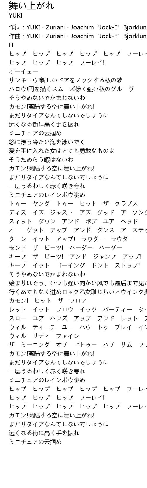 | 作词:YUKI・Zuriani・Joachim“Jock-E”Bjorklund | |