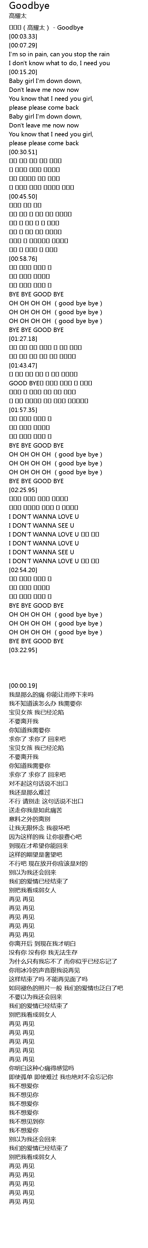 | [00:00.19] | 코요태(高耀太) - Goodbye |