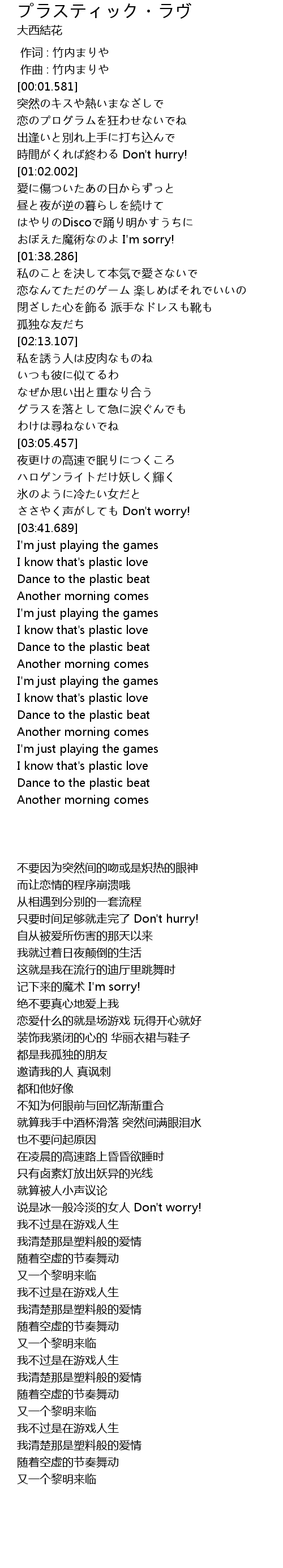 | [03:47.436] | 我清楚那是塑料般的爱情 |