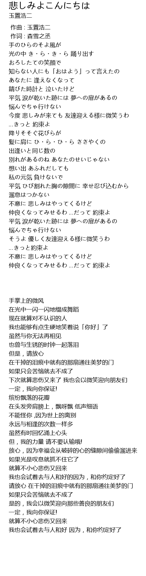 | [00:39.95] | 我也能够有点生硬地笑着说「你好」了 |