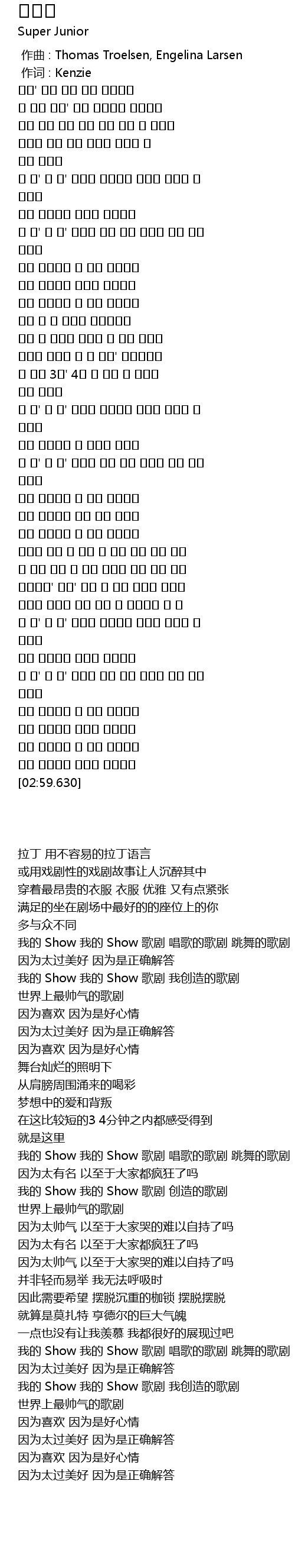 | [02:31.610] | 我的 Show 我的 Show 歌剧 我创造的歌剧 世界上最帅气的歌剧 |