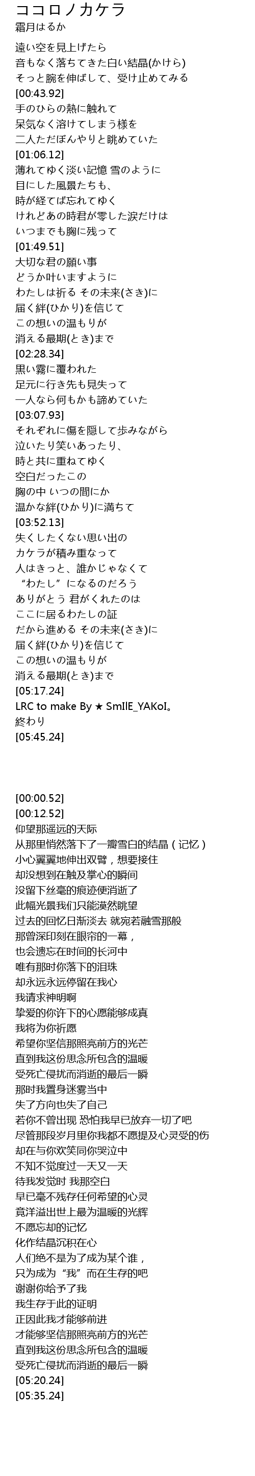 | [05:20.24] | LRC to make By ★ SmIlE_YAKoI。 |
