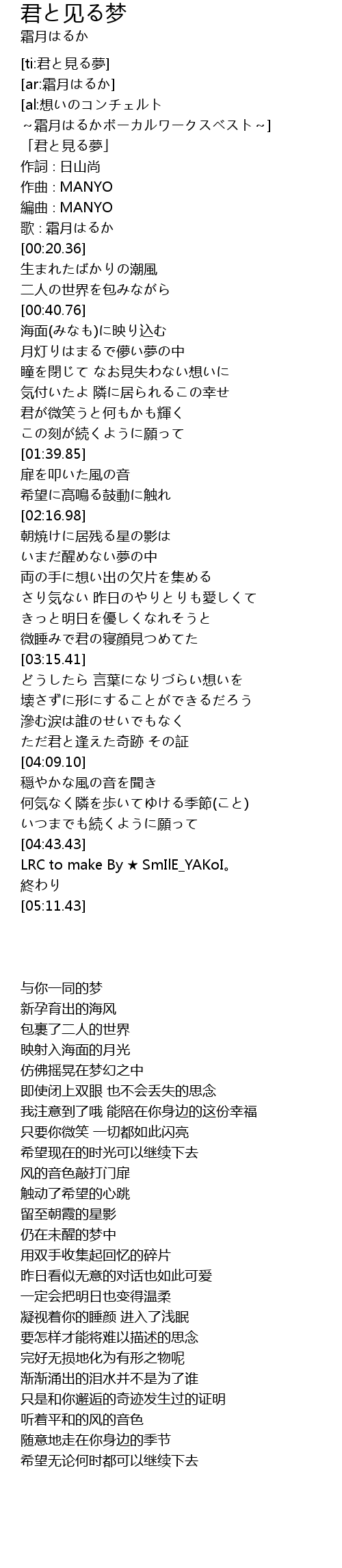 | [00:51.93] | 月灯りはまるで儚い夢の中 |