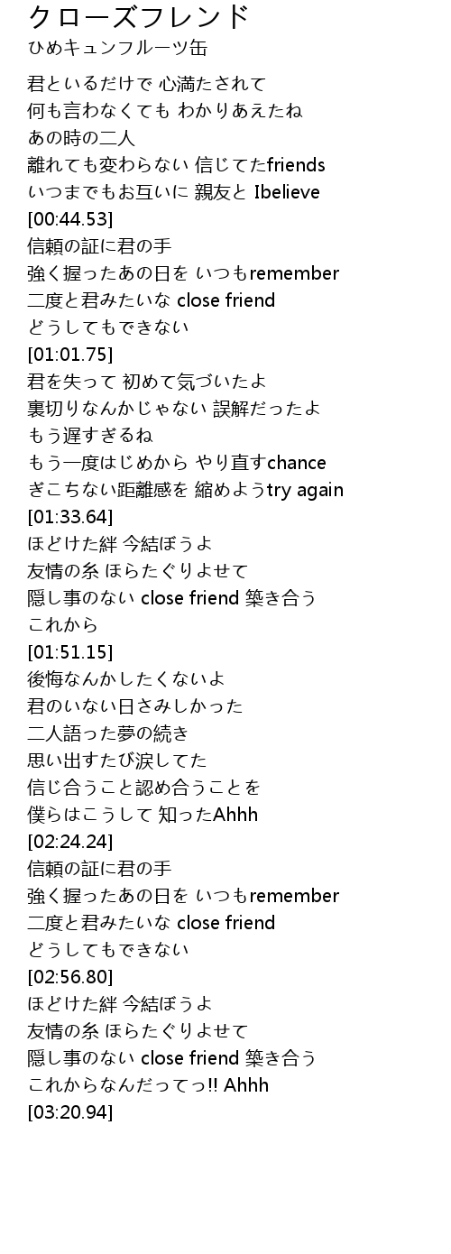 | [03:07.26] | 隠し事のない close friend 築き合う |