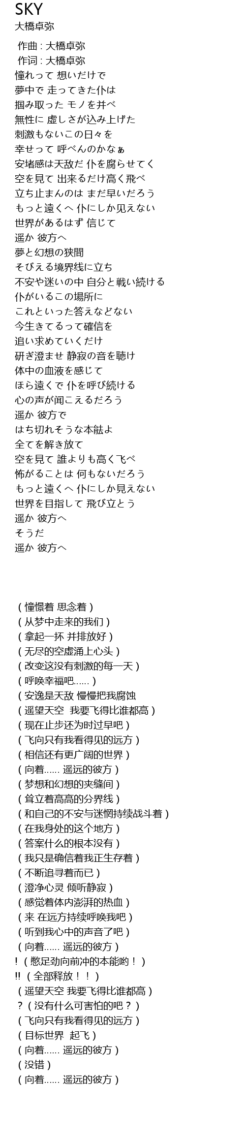 | [02:59.490] | 空を見て 誰よりも高く飞べ |