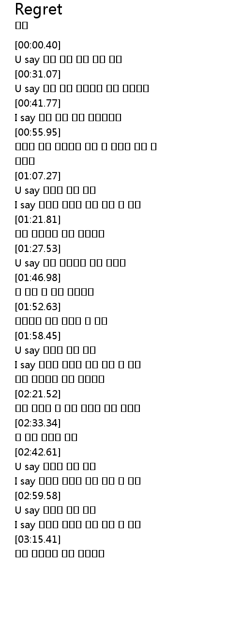 | [01:38.93] | U say 내겐 어리석은 지난 후회뿐 |