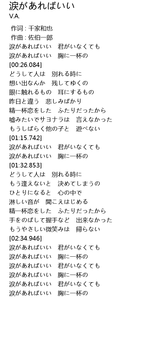 | [02:49.940] | 涙があればいい 君がいなくても |