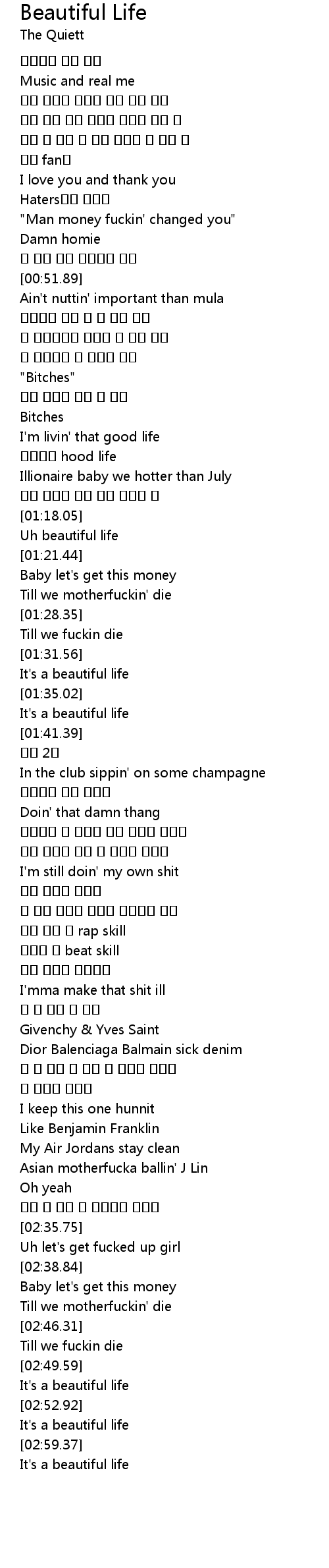 | [01:18.72] | Uh beautiful life |
