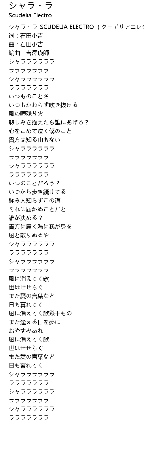 | [00:00.00] | シャラ・ラ-SCUDELIA ELECTRO (クーデリアエレクトロ) |