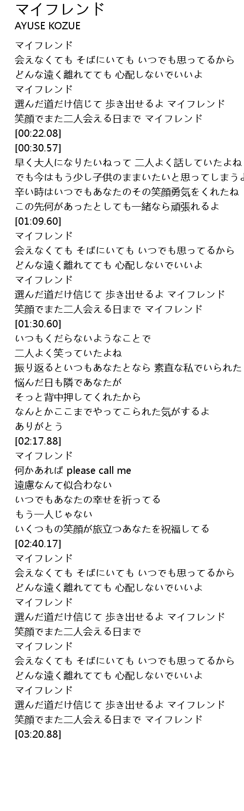 | [03:05.59] | どんな遠く離れてても 心配しないでいいよ マイフレンド |
