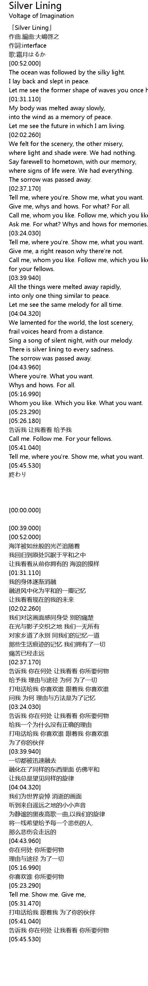 | [05:41.470] | Tell me, where you're. Show me, what you want. |