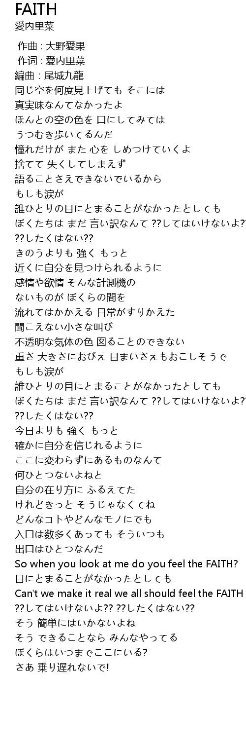 | [03:17.36] | So when you look at me do you feel the FAITH? |