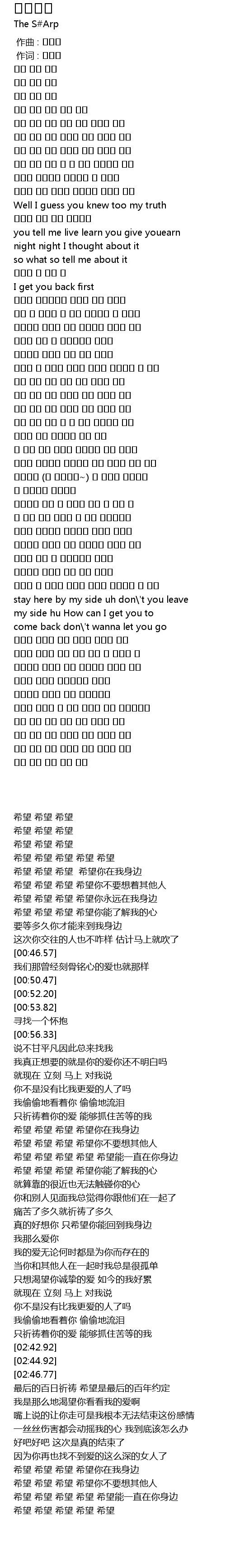 | [03:36.16] | 希望 希望 希望 希望 希望 |
