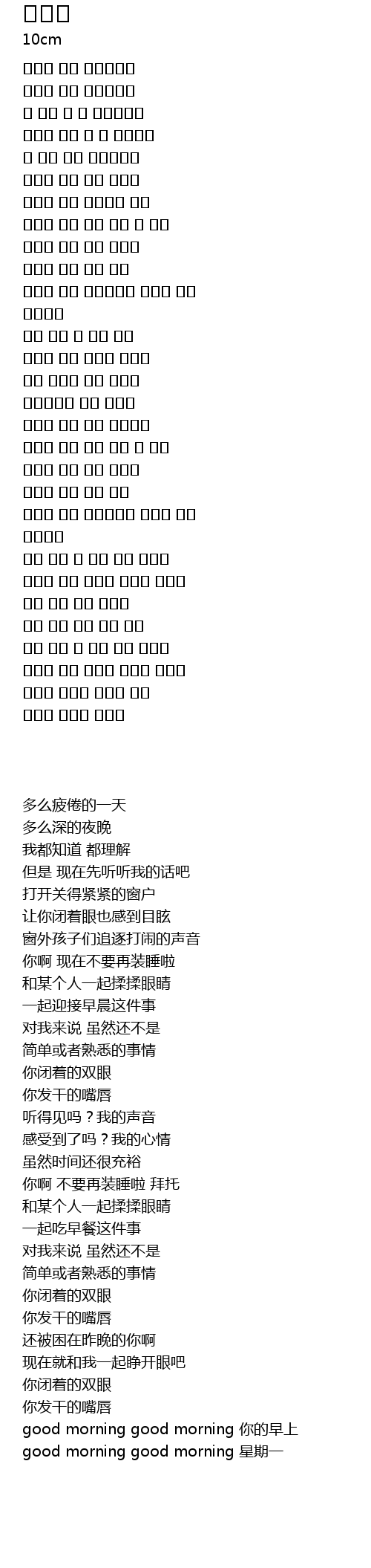 | [03:42.22] | good morning good morning 你的早上 |