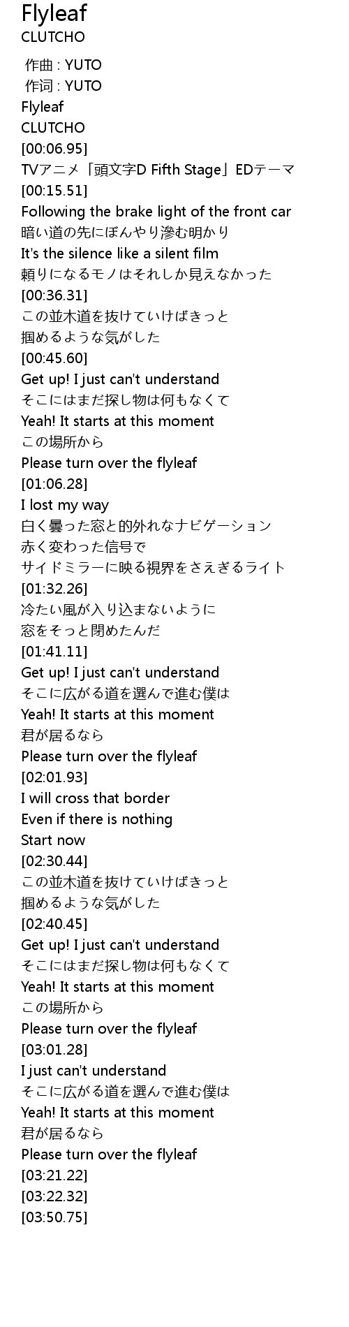 | [00:07.96] | TVアニメ「頭文字D Fifth Stage」EDテーマ |
