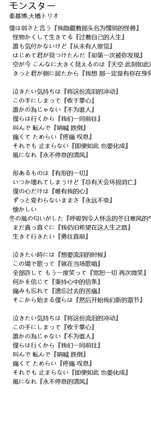| 怪物かくして生きてる『过着自己的人生』 | |
