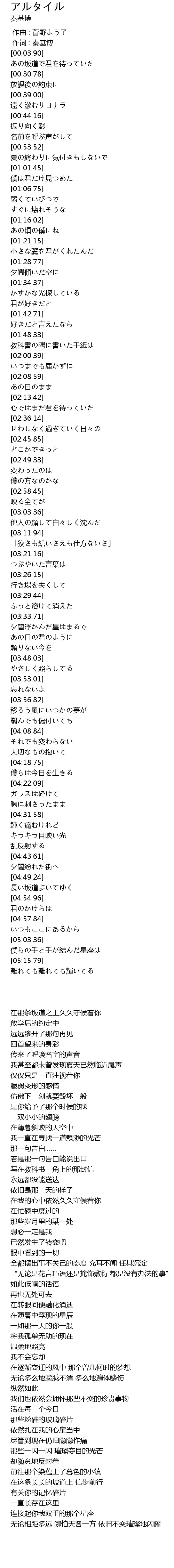 | [00:24.65] | 在那条坂道之上久久守候着你 |
