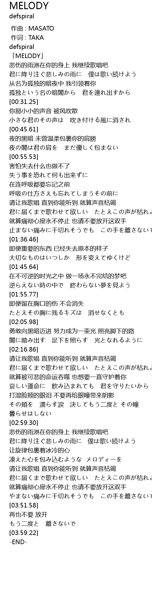 | [03:23.20] | 让旋律包裹着冰冷的心 |