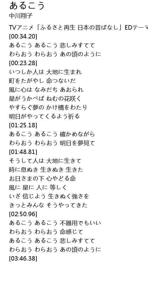 | [00:31.02] | TVアニメ「ふるさと再生 日本の昔ばなし」EDテーマ |