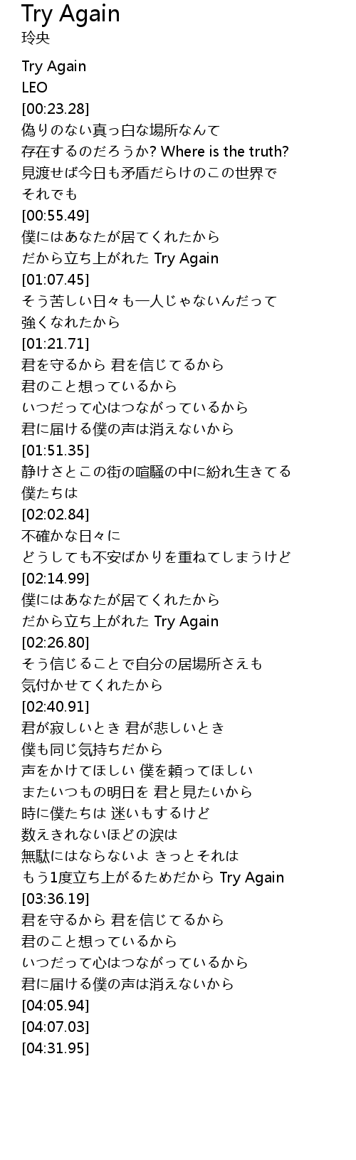 | [03:28.55] | もう1度立ち上がるためだから Try Again |