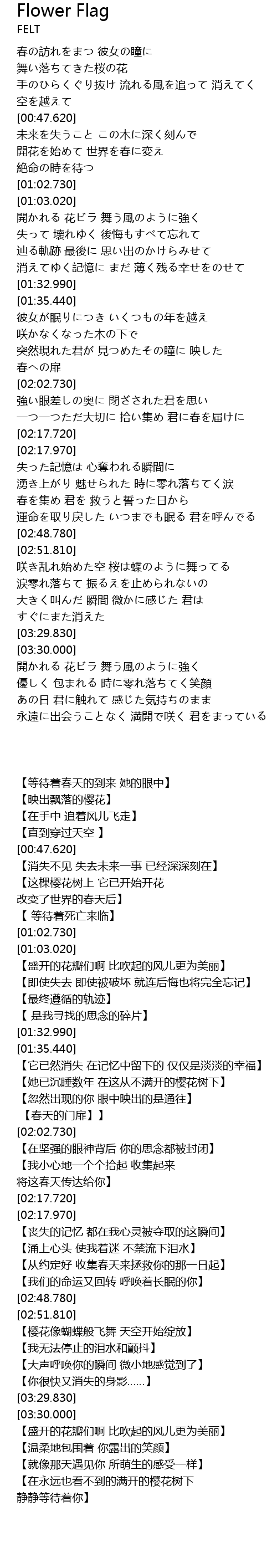 | [02:30.070] | 【从约定好 收集春天来拯救你的那一日起】 |