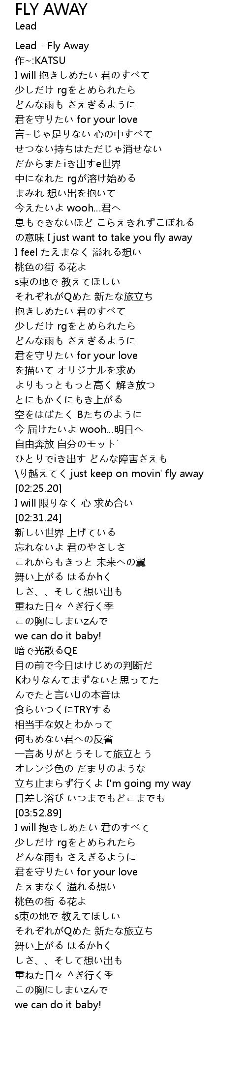 | [00:05.82] | Lead - Fly Away |