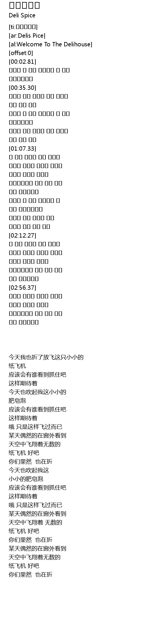 | [02:43.98] | 纸飞机 好吧 |