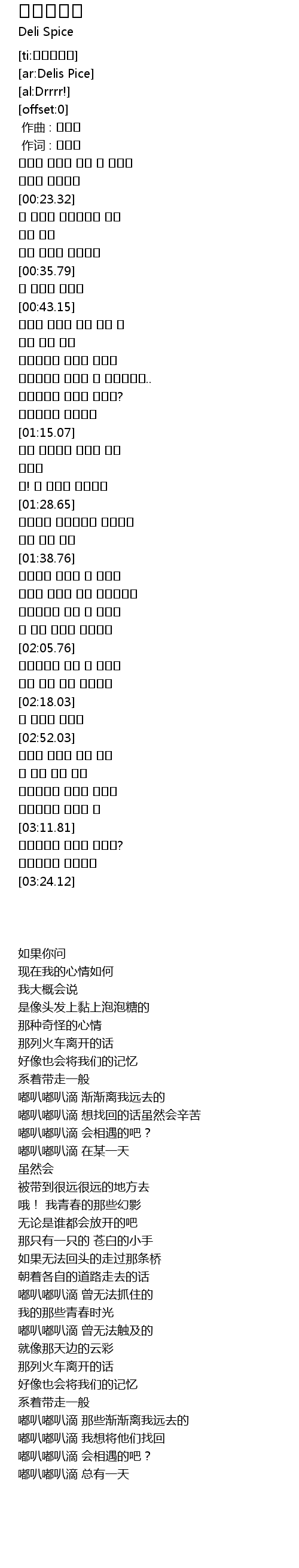 嘟叭嘟叭滴 渐渐离我远去的 |