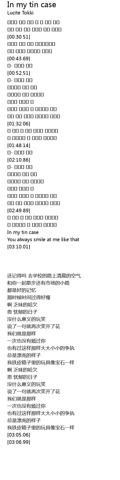 | [03:05.06] | In my tin case |