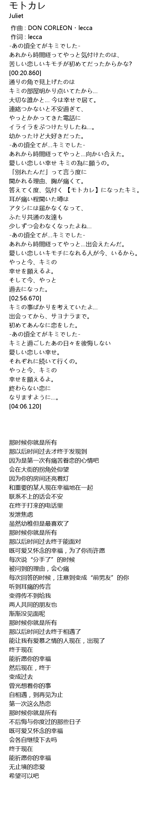 | [01:48.370] | 答えてく度、気付く 【モトカレ】になったキミ。 |