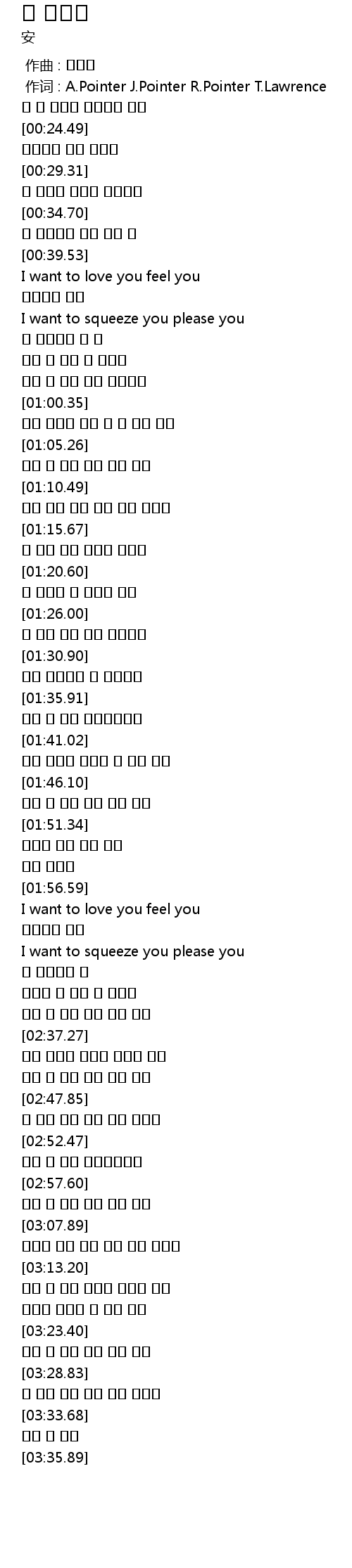 | [00:01.00] | 作词 : A.Pointer J.Pointer R.Pointer T.Lawrence |