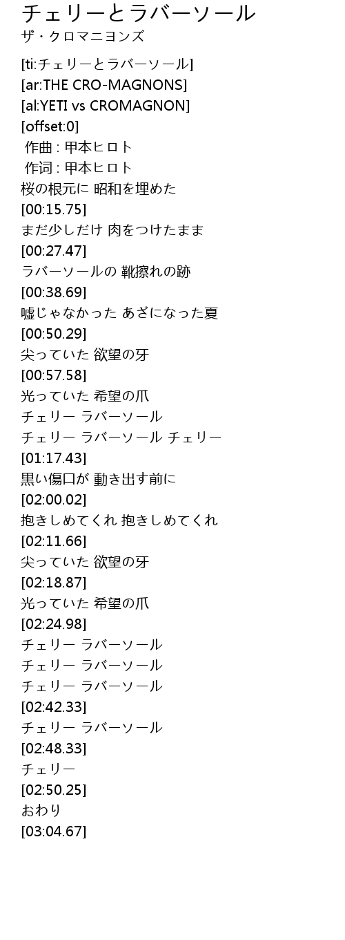 | [02:37.22] | チェリー ラバーソール |