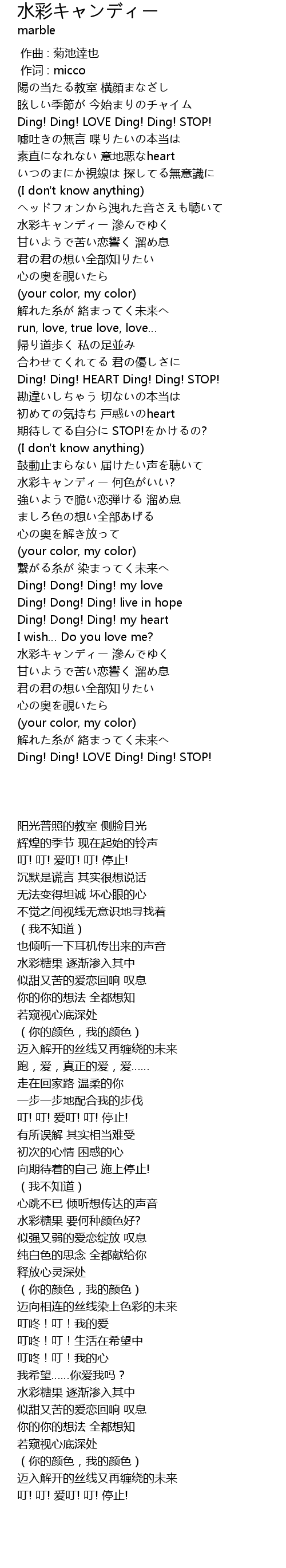 | [03:22.300] | Ding! Dong! Ding! my heart |
