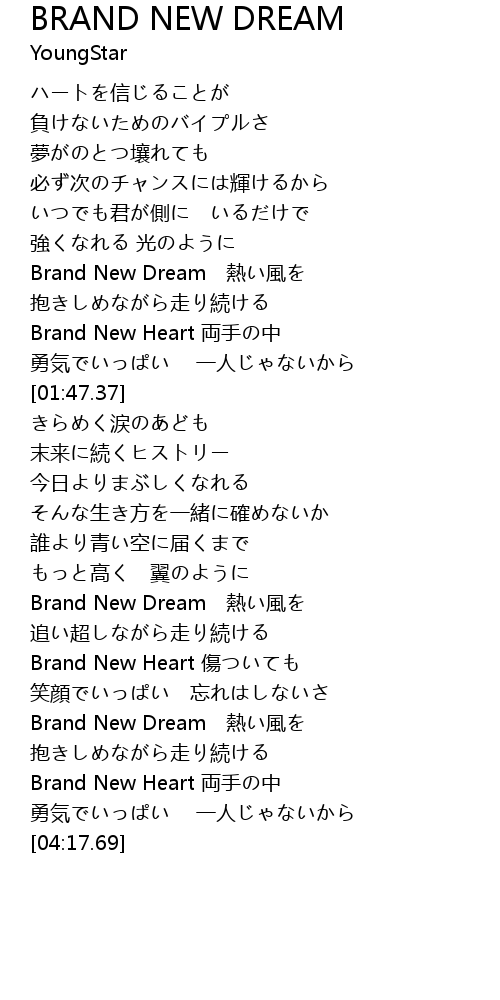 | [03:51.15] | Brand New Dream 熱い風を |