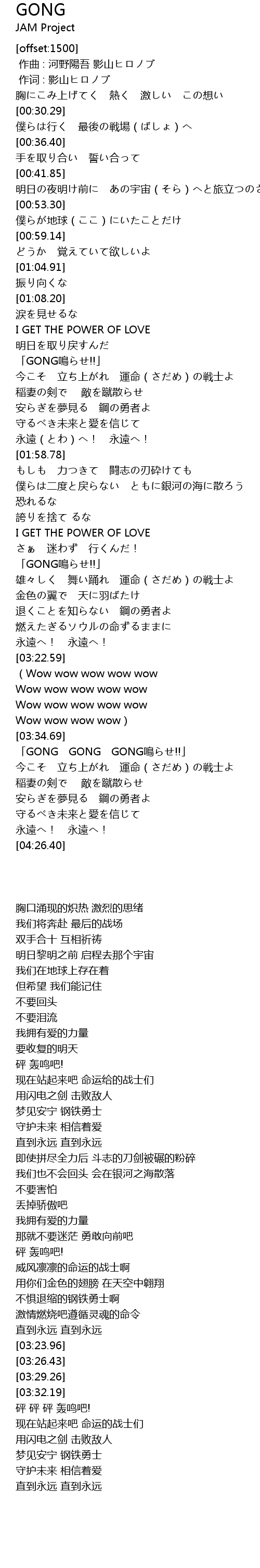 | [03:51.24] | 「GONG GONG GONG鳴らせ!!」 |