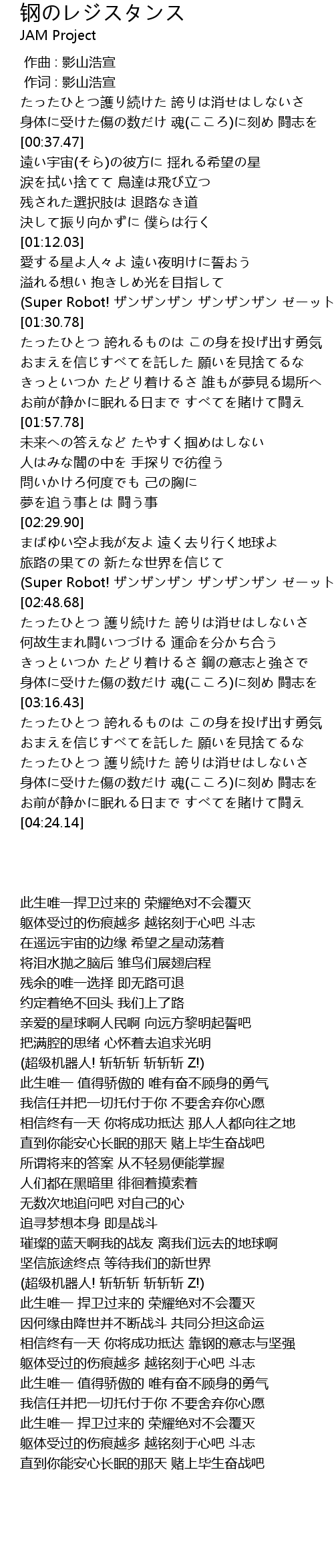 | [01:24.93] | (超级机器人! 斩斩斩 斩斩斩 Z!) |