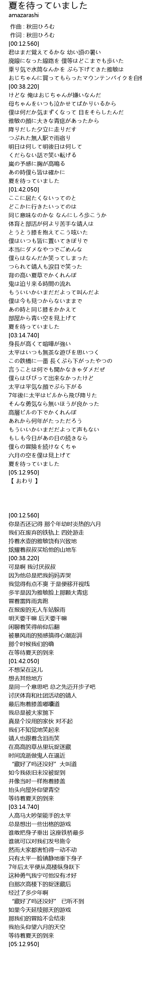 | [03:03.700] | 夏を待っていました |