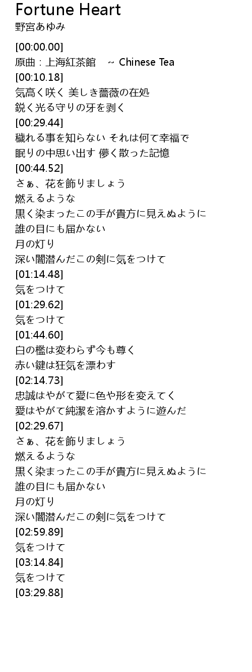 | 歌曲 | Fortune Heart |