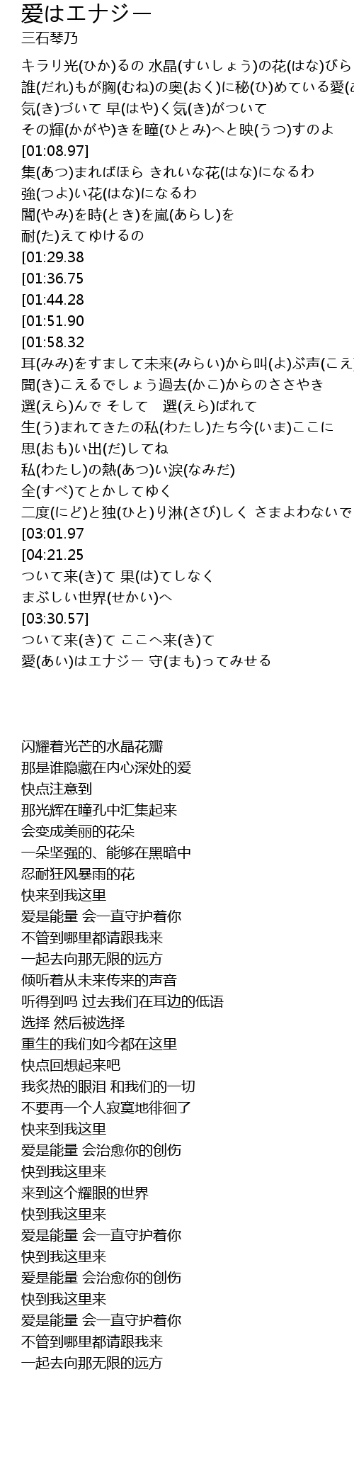 | [03:09.27][04:21.25] | 愛(あい)はエナジー いやしてあげる |