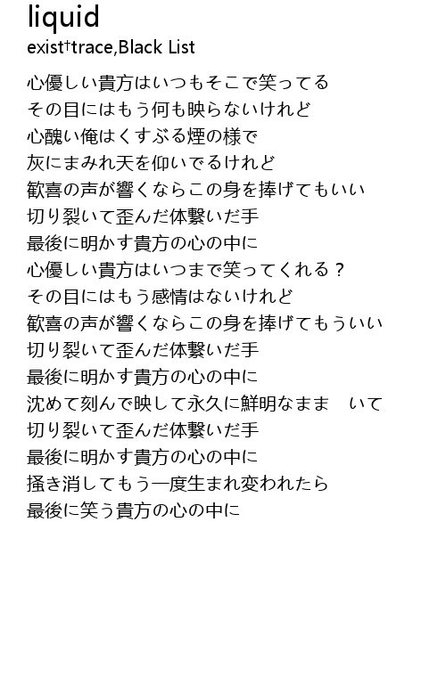 | 沈めて刻んで映して永久に鮮明なまま いて | |