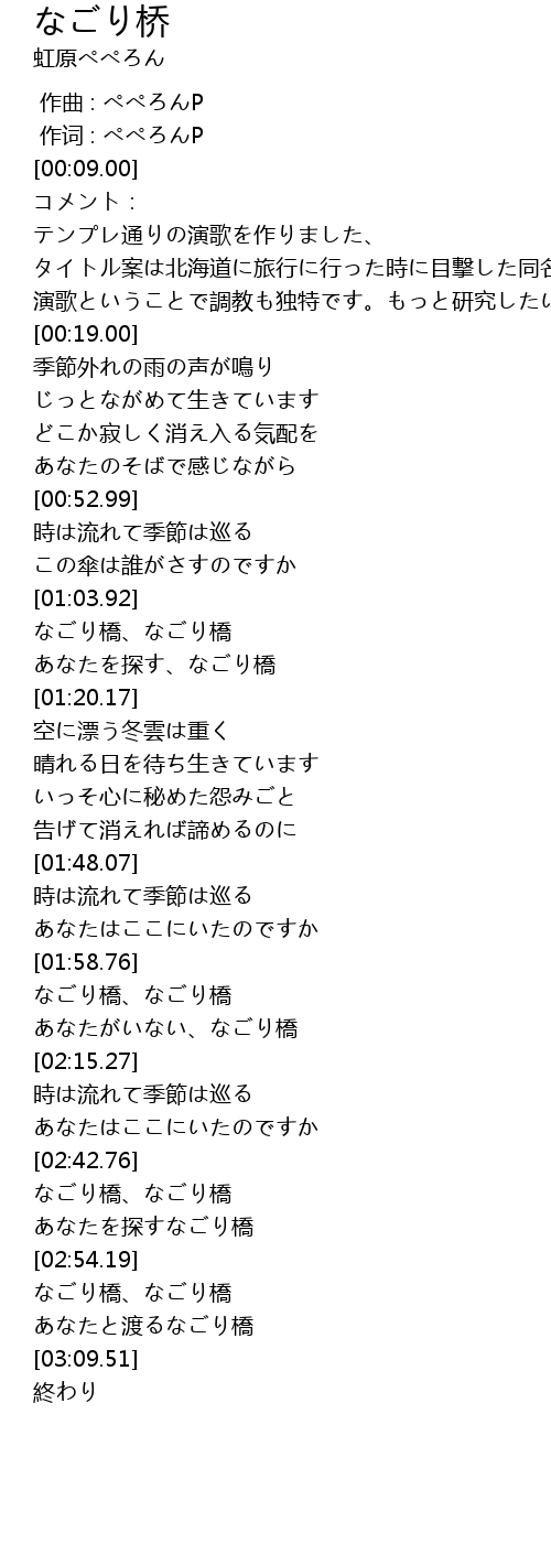 | [00:13.00] | テンプレ通りの演歌を作りました、 |