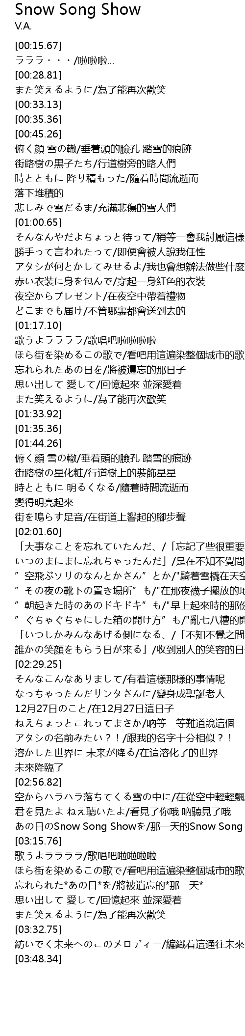 | [03:13.06] | あの日のSnow Song Showを/那一天的Snow Song Show |